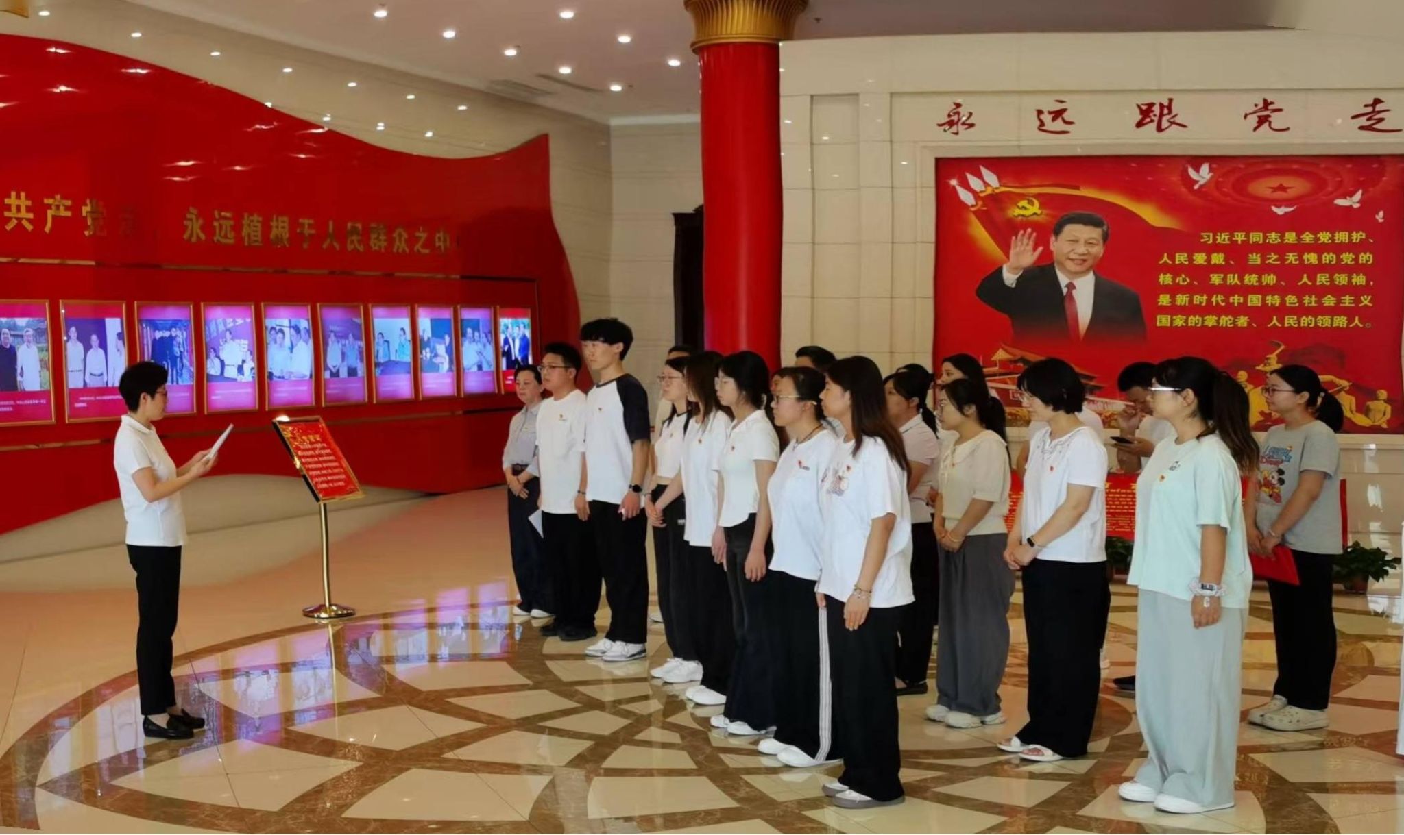 参观结束后,在庄重的氛围中,老党员代表为新党员佩戴上了熠熠生辉的党员徽章,新老党员面对面完成了一场初心的传承,一场责任与使命的传递。全体党员面向鲜红的党旗,举起右拳,在党总支副书记张华同志的带领下庄严宣誓,当铮铮誓言响起,数十年的坚守与青春的承诺在此刻交相辉映,赓续着共产党人代代相传的精神血脉。