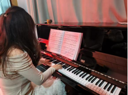 崔艺馨同学的钢琴独奏舒缓悠扬,指尖在琴键上跳跃,流淌出的旋律抚平了冬日的寒意。