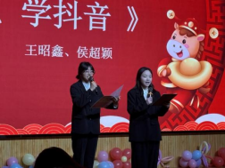 王昭鑫、侯超颖两位同学带来的相声《学抖音》,贴近生活,将网络热点与校园趣事结合,包袱不断,笑声连连。