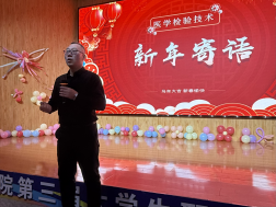 晚会开场,辅导员雷亚旭首先为同学们送上诚挚的元旦祝福,并对大家在过去一学期中取得的成长与进步给予了充分肯定。从课堂上的专注求索,到实验室里的严谨操作,再到校园活动中的热情投入——围绕医学检验技术专业的学习日常,老师的话语里充满赞许与期许。他勉励同学们在新的一年里,既要扎实学好专业、练就过硬本领,也要拥抱多彩生活、收获真挚情谊。